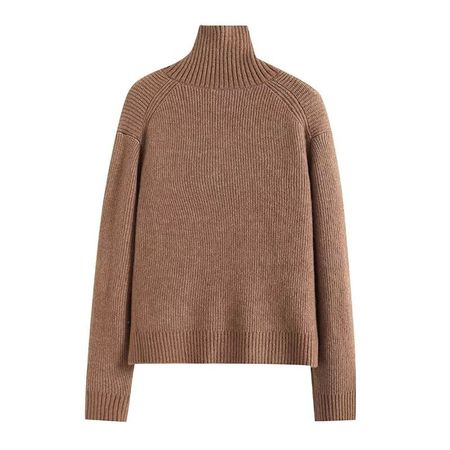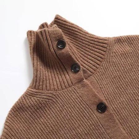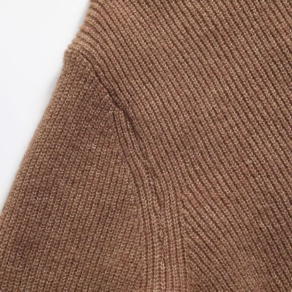 Brown Sweater Knitted Cardigan Long Sleeve Soft Jacket Top for Women