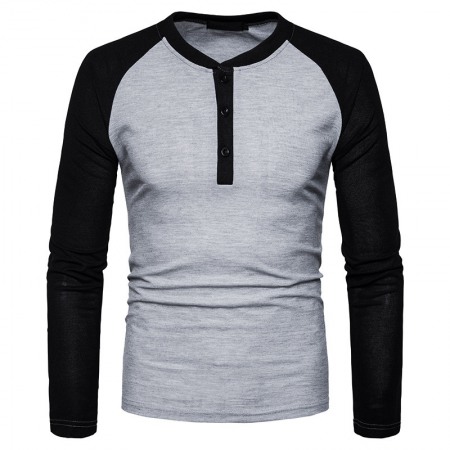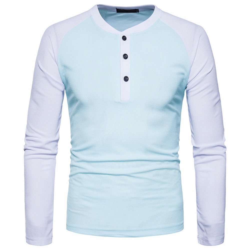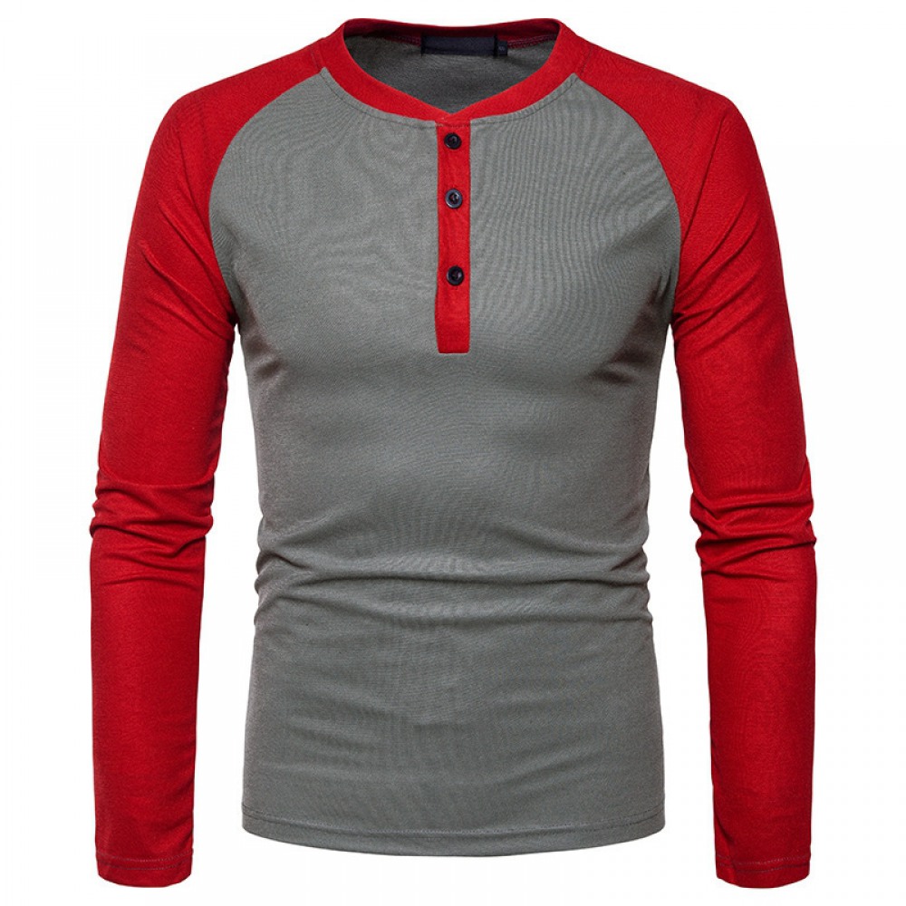 Men's Henry Collar Color Matching Long-Sleeved Plus Size T-Shirt