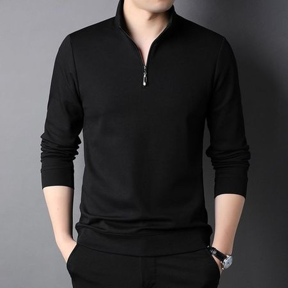 Men's Long-Sleeved Sweatshirt Stand Collar Solid Color Bottoming Top