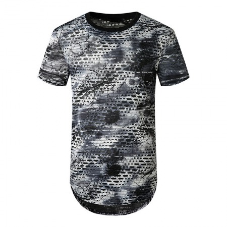 Men's Plus Size Smiley Hole Short-Sleeved Hipster Hip-Hop T-Shirt
