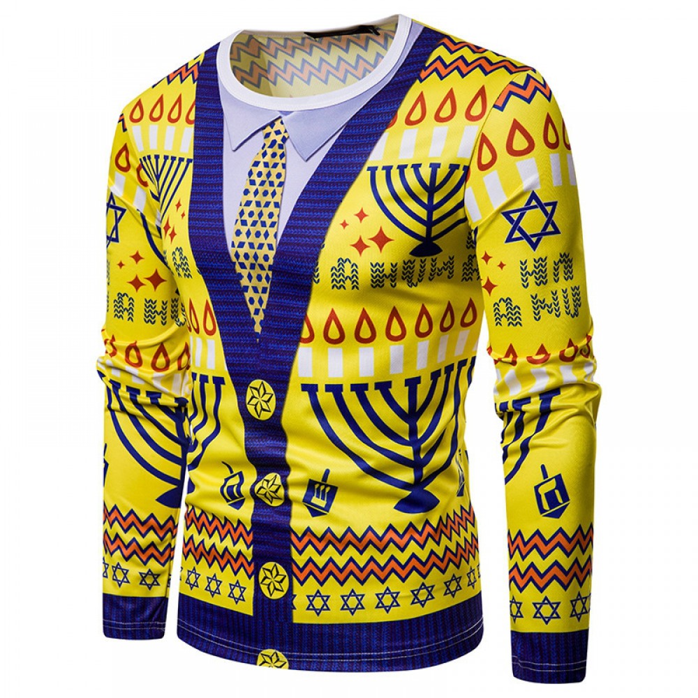New 3D Personality Fake Two-Piece Printing Fashion Men's Christmas Long-Sleeved T-Shirt