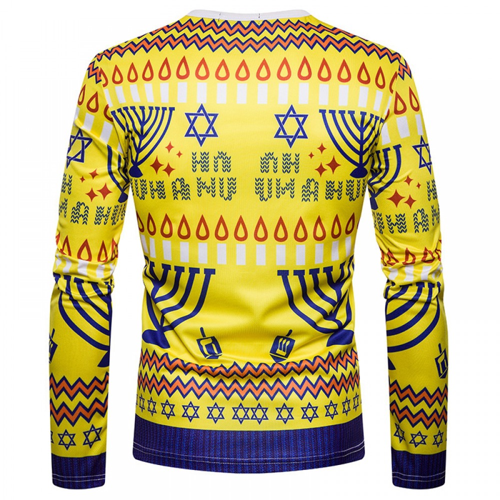 New 3D Personality Printing Fashion Men's Christmas Dinosaur Pattern Long-Sleeved T-Shirt