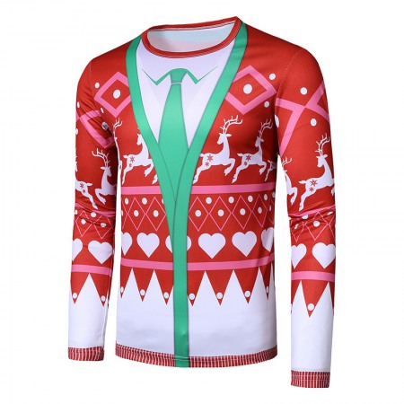 New 3D Personality Fake Two-Piece Printing Fashion Men's Christmas Long-Sleeved T-Shirt