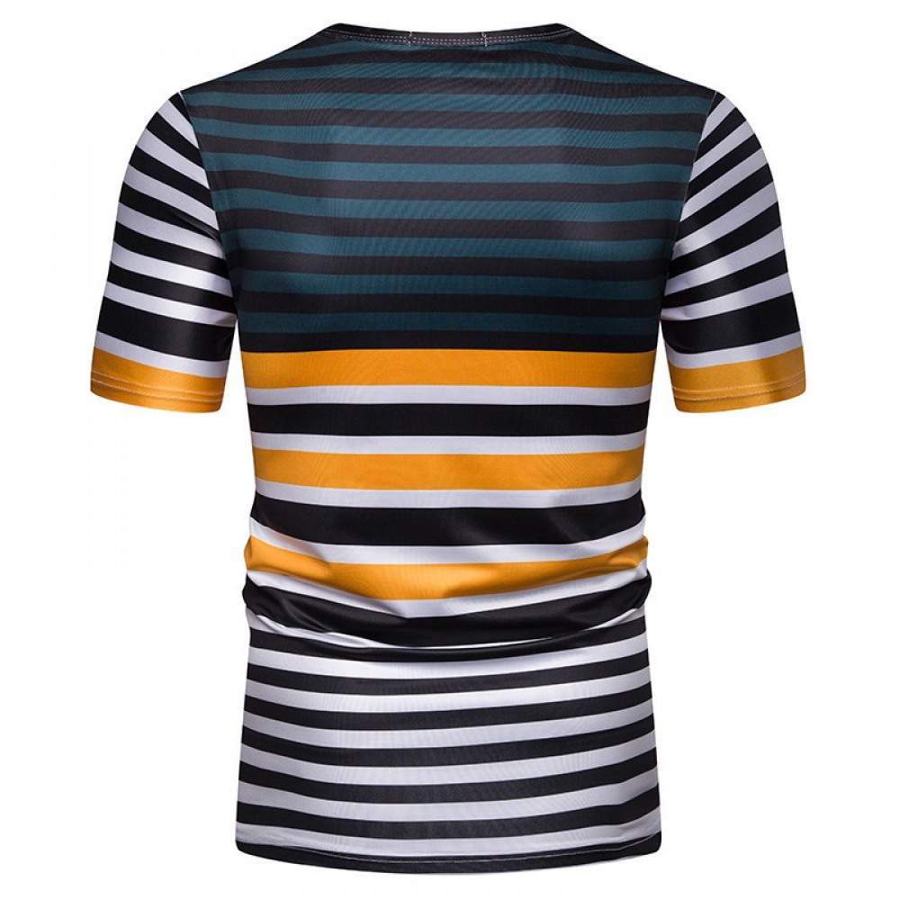 New Summer Men's Short-Sleeved T-Shirt Mens Contrast Striped Slim Casual T-Shirt