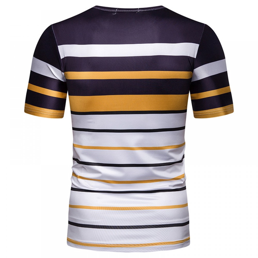 New Summer Men's Short-Sleeved T-Shirt Mens Contrast Striped Slim-Fit Casual T-Shirt