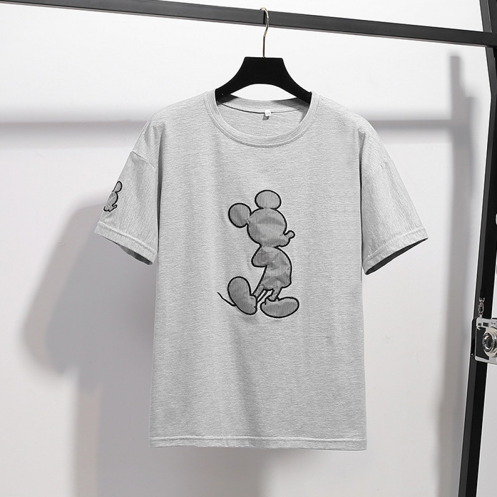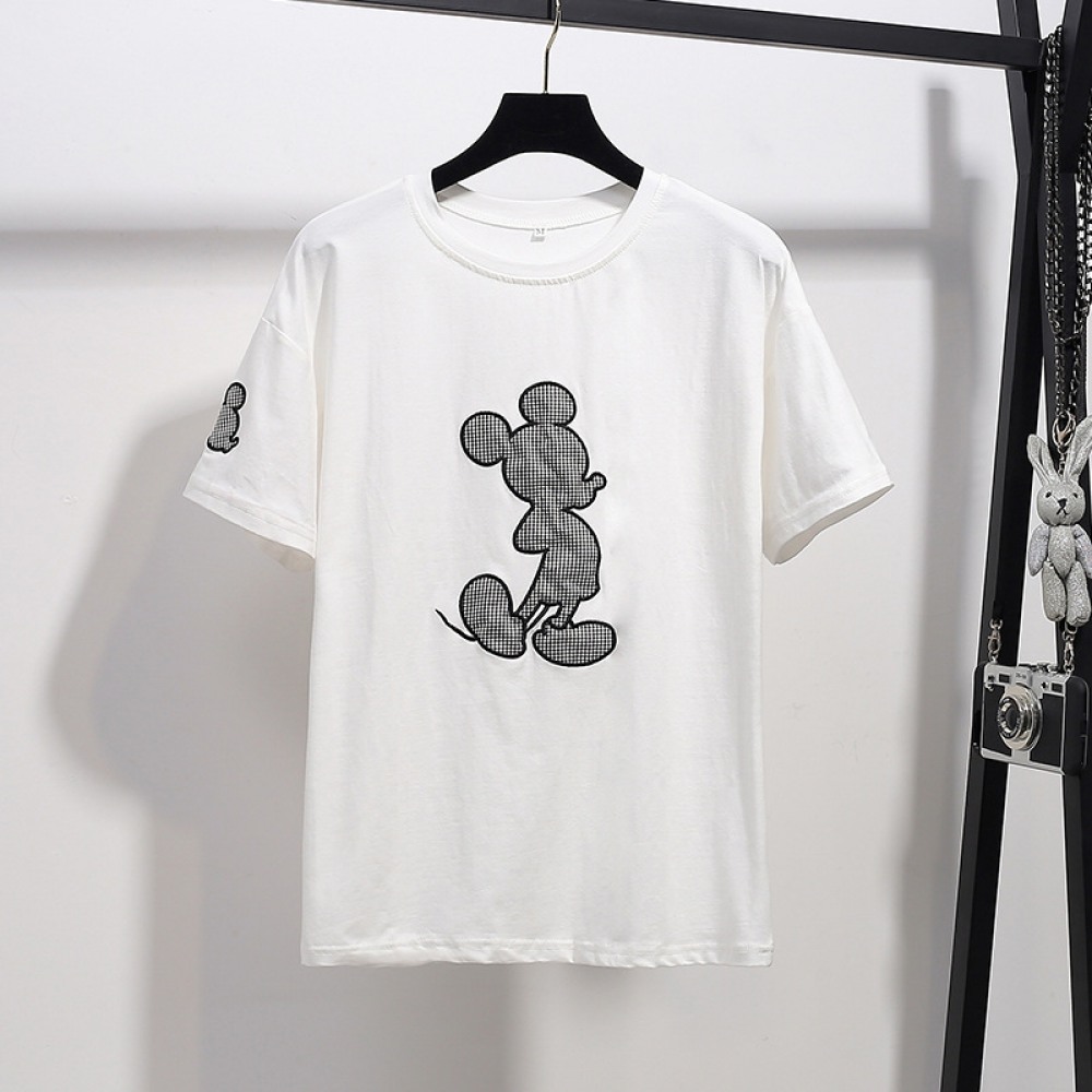 New Summer Plus Size Women's Slimming Top Fat Cartoon Embroidered Loose Short Sleeve T-Shirt