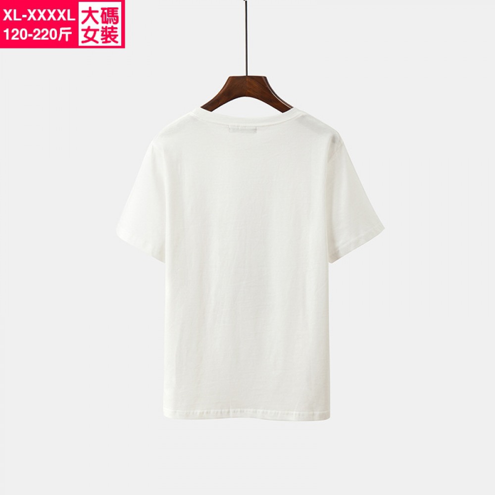 New Summer Plus Size Women's Slimming Top Fat Cartoon Embroidered Loose Short Sleeve T-Shirt