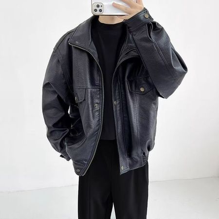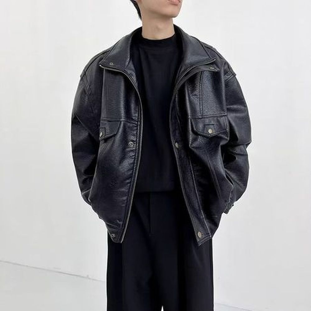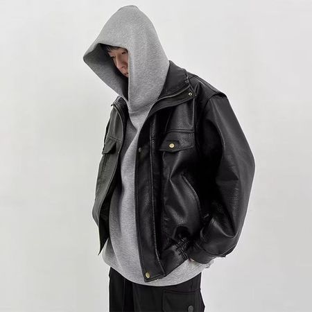 Pu Leather Jacket Men's Loose Casual Retro Parka