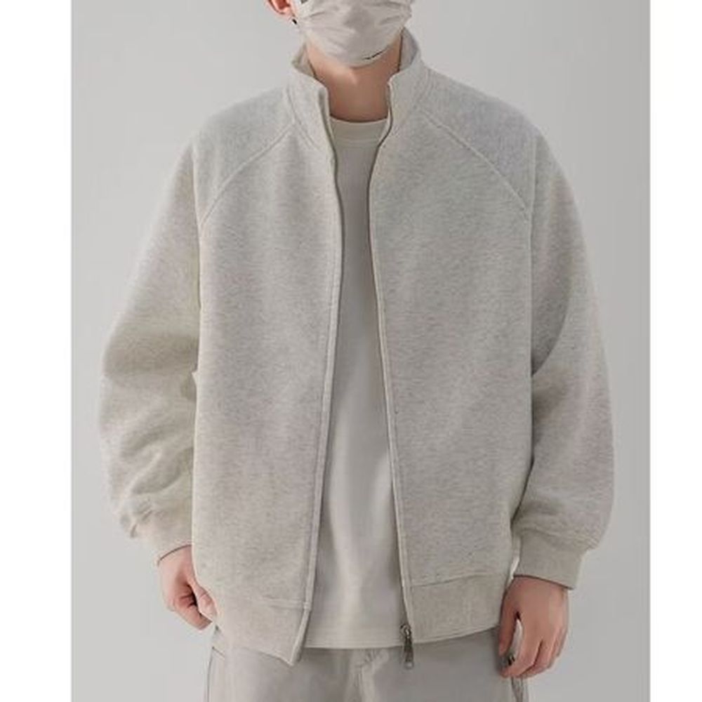 Solid Color Stand Collar Sweatshirt Men's Casual Loose Jacket